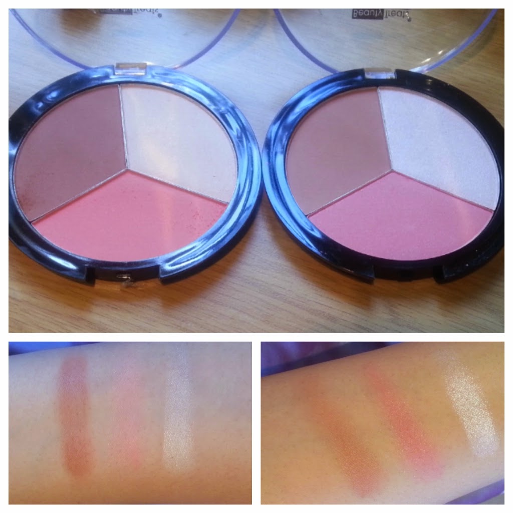 I have used the peach so far, and I loved it! The highlighter is great, and isn’t too shimmery, it just gives skin a radiant glow. The blush gives cheeks a flushed look, and isn’t that bright cheap clown pink. The contour is the perfect matte powder, and blends well.